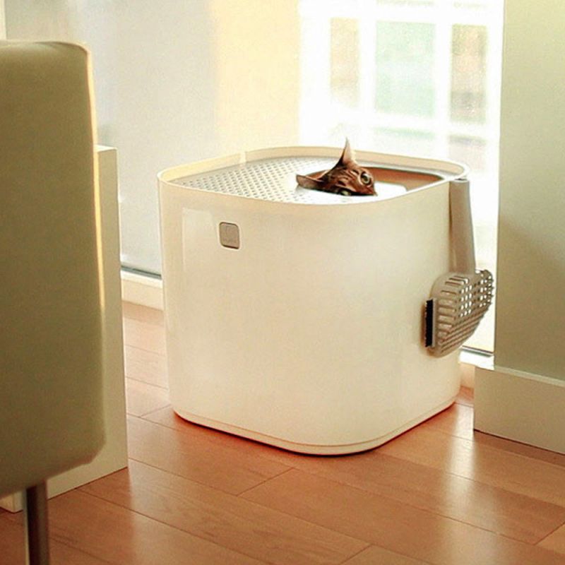 Deze Modkat kattenbak, of mogen we het een kattentoilet noemen, heeft nog eens een modern design! Eigenlijk past ie daardoor wel in ieder interieur. Hij is te koop in verschillende kleuren, waaronder wit en zwart. De ingang van de kattenbak zit aan de bovenkant en daardoor blijft al het kattengrit mooi in de bak. Dat komt ook omdat er bovenop een deel zit waar de korrels weer doorheen kunnen vallen. Het deksel met kleine gaatjes werkt als een soort kattenbakmat. Deze kattenbak biedt je kat echt een privé en veilige omgeving, maar er is ook genoeg ruimte om te graven.